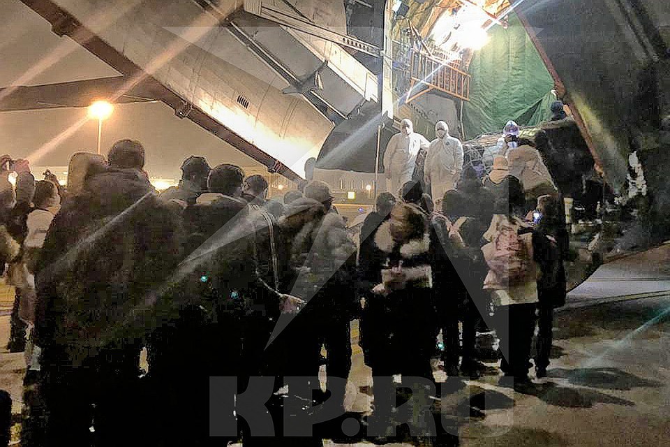 Погрузка наших соотечественников в присланный за ними в Ухань самолет ВКС России