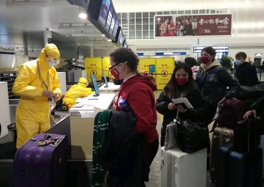 Проверка пассажиров и багажа перед отправкой спецрейса ВКС. Фото Посольство России в Китае/Фейсбук