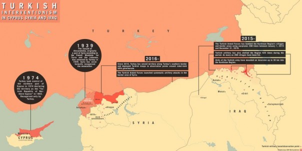 В 1974 году турецкий экспедиционный корпус высадился на севере Кипра под предлогом защиты его турецкого меньшинства, что привело к долгосрочной оккупации северной части острова, сопровождавшейся многочисленными жертвами и массовыми перемещениями населения. Периодические рейды в северный Ирак, регулярные авиационные и ракетные удары по лагерям «курдских сепаратистов» являются лишь одной из форм проекции силы на нефтеносный «Мосульский вилайет» бывшей Османской империи.
