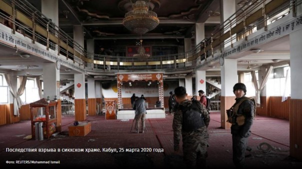 Но похоже, что перемирие всё еще так и остается на словах — 25 марта в Кабуле в сикхском храме прогремел взрыв, погибли 45 человек. Ответственность на себя взяло ИГИЛ (запрещено в РФ). По мнению Омара Нессара, подобные теракты используются в качестве провокаций, чтобы сорвать договоренности от 29 февраля — как вне, так и внутри страны много тех, кого не устроило желание «Талибана» идти на уступки США.