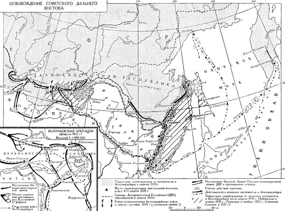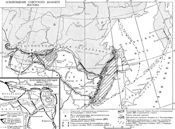 Насчитывавшая 20 тысяч штыков армия белогвардейцев овладела Хабаровском и, координируя свои действия с японским командованием, изготовилась к броску в Амурскую область. Однако уже в начале 1922 г. армия ДВР нанесла поражение белогвардейцам при Волочаевке, а 14 февраля был освобождён Хабаровск.