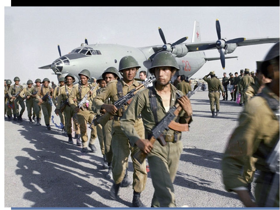 Окончание вывода ограниченного контингента советских войск из Демократической Республики Афганистан. Колонна бронетехники пересекает афгано-советскую границу по мосту Дружбы через реку Аму-Дарью