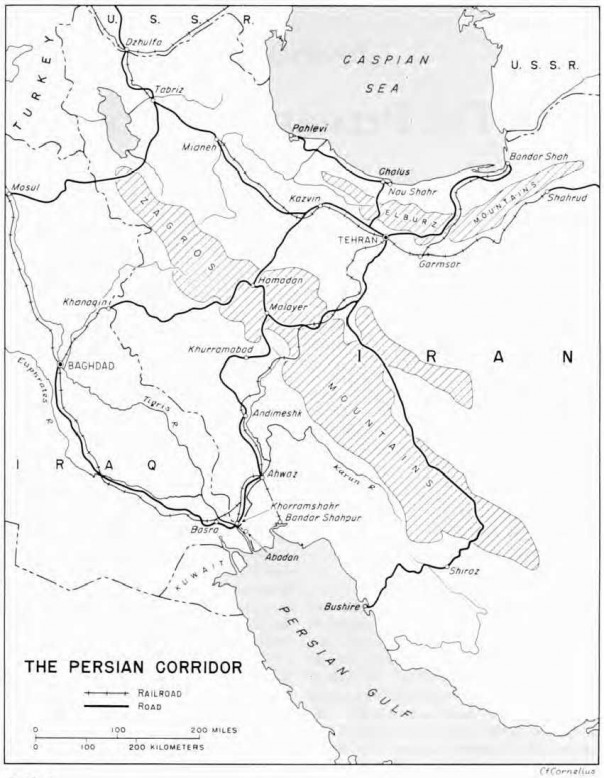 Присутствие советских и британских войск в Иране в последующие пять лет позволило взять под контроль, а затем расширить пропускные возможности Трансиранского маршрута, по которому Советский Союз за годы войны получил от союзников более 23% военных грузов (по тоннажу). По маршруту шло в основном морское оборудование и автомобили. Только для нужд Красного флота было доставлено свыше 40 тысяч тонн грузов, среди них автоматические зенитные пушки, пулемёты, зенитные автоматы… Была необходимость и проведения масштабной модернизации транспортной системы Ирана. В сжатые сроки были построены Трансиранское шоссе, железная дорога и два порта в Персидском заливе. В американской прессе этот маршрут получил название «Персидский коридор».