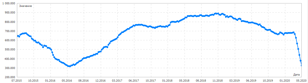 За 7 недель, за 49 дней, количество нефтяных вышек сократилось на 52,4%, на 357 штук с 683 до 325. Это практически минимум с 2009 г. Меньше было только в мае 2016, при цене барреля $55 - 316. Но и этот рубеж в ближайшее время с большим свистом будет пройден. Каждую неделю будем видеть нарастающий обвал в секторе бурения. За ним слетит добыча. За ней слетит выручка. За ней слетят выплаты процентов по кредитам (почти вся прибыль сланцевиков уходит банкирам).