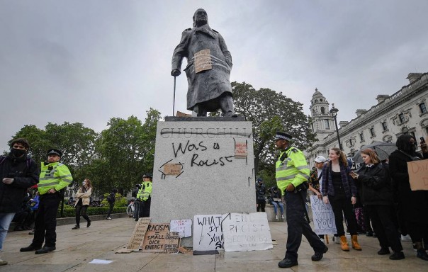 Памятник Уинстону Черчиллю на Парламентской площади в Лондоне, 7 июня 2020 года