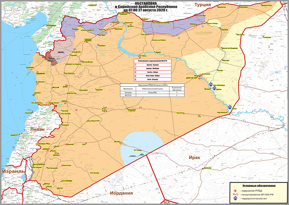 Справка по обстановке на территории Сирийской Арабской Республики на 27 августа 2020 г.