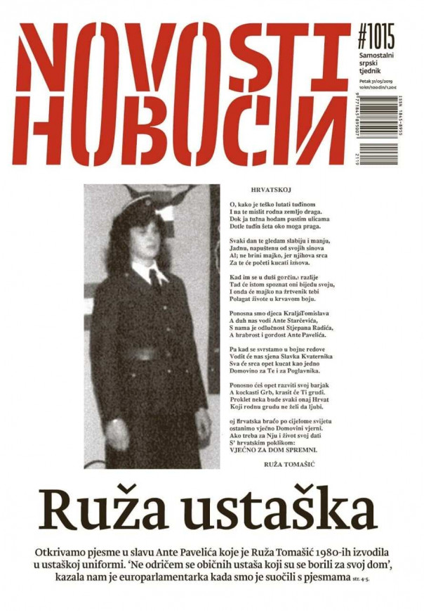 Газета хорватских сербов опубликовала фото Ружи Томашич в усташеской форе, и ее восхваляющие Павелича и компанию стихи