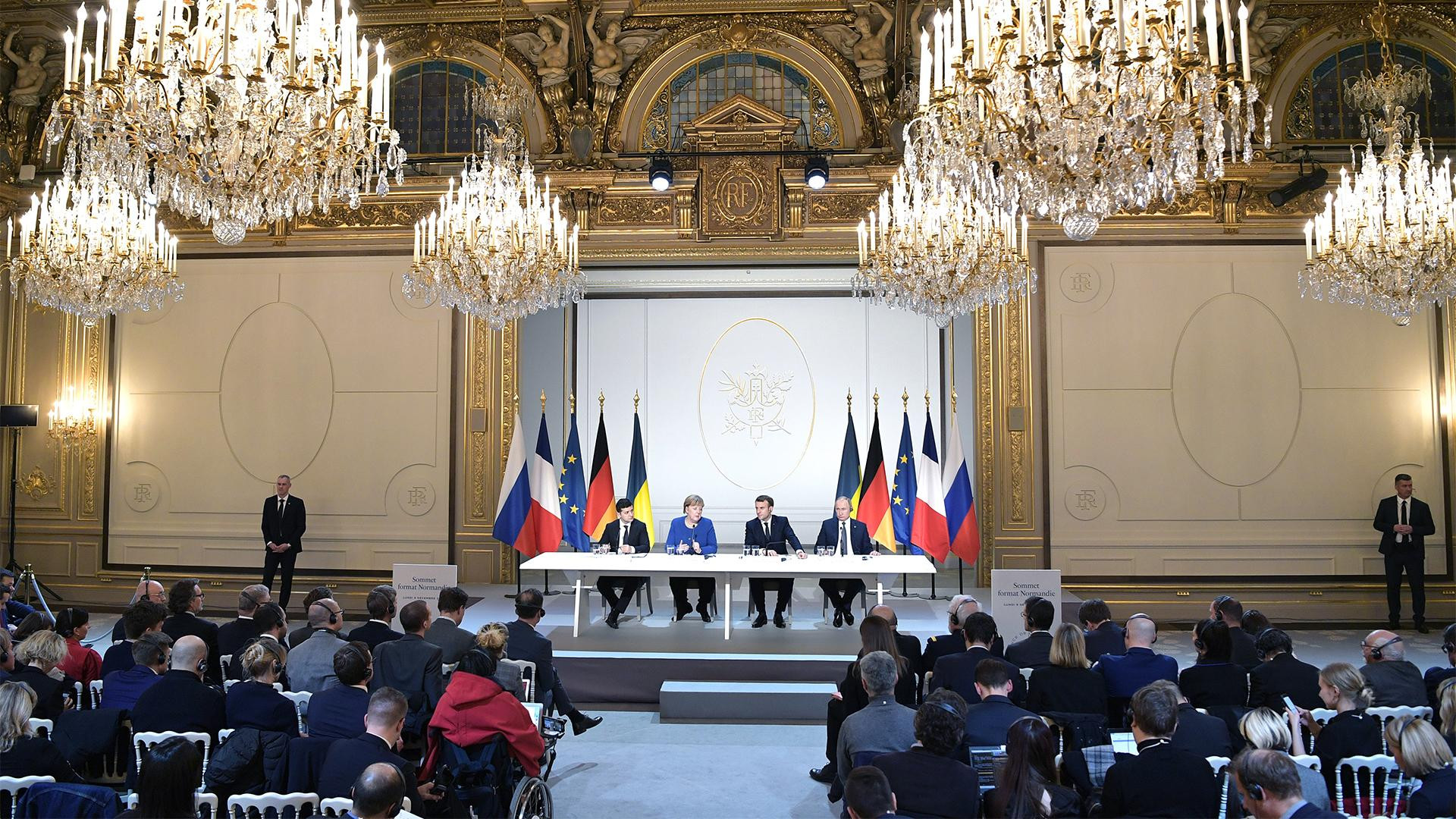 Первый за почти пять лет саммит нормандского формата прошел в Париже 9 декабря 2019 года. Тогда лидеры Германии, России, Украины и Франции подтвердили свою приверженность Минским соглашениям и договорились о следующем: