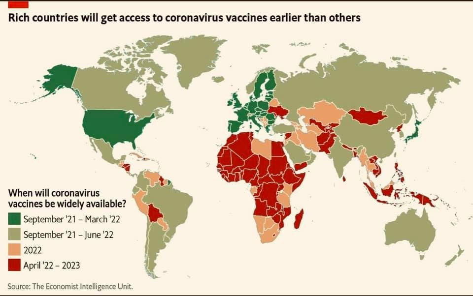 И.о. гендиректора Центра общественного здоровья Минздрава Игорь Кузин объявил: «Государство не имеет права влиять на ту вакцину, которая будет распределена в рамках механизма COVAX». Следовательно, ждать придётся то, что дадут, а дарёному коню в зубы не смотрят. В рамках COVAX планируют распространять три вакцины, которые ещё находятся на стадии клинических испытаний. Их эффективность и безопасность пока не доказаны, а когда завершаться испытания – точно неизвестно. Бесплатно планируют поставлять вакцины производства британско-шведской компании AstraZeneca, франко-британской Sanofi-GSK и китайской UBI/UBIA Group. COVAX планирует поставлять бесплатные вакцины беднейшим странам мира в расчёте на 5% населения. Украина оказалась в одном ряду с африканскими странами. Выяснилось и то, что гуманитарную вакцину от COVAX придётся ждать, как минимум, до 2022 года. Такой прогноз опубликовал журнал The Economist.