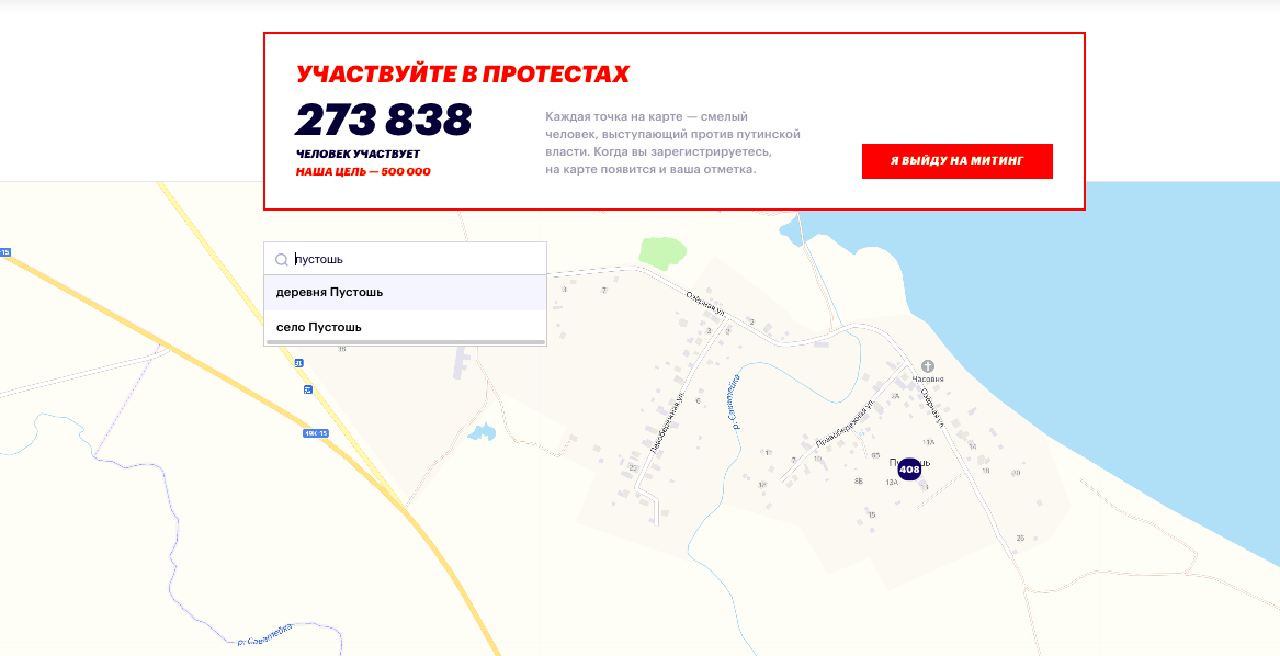 Пользователи Интернета обратили внимание, что на сайте в поддержку блогера Алексея Навального отметки о регистрации сторонников появляются в весьма неожиданных местах. Портал Telegraph назвал как минимум три места, где количество населения явно не соответствует числу появившихся маркеров.