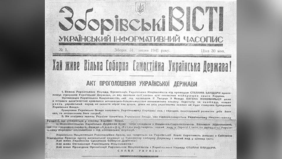 Девятый день Великой Отечественной войны. Понедельник, 30 июня 1941 года. Центральный комитет ВКПб Украины начинает подготовку организации подполья и партизанской борьбы. Немцы входят в украинские города Броды, Буйск, Винники и Львов. И именно во Львове в этот день Ярослав Стецько на рыночной площади оглашает «Акт провозглашения Украинского государства», в котором говорится: «Новая Украинская держава будет тесно сотрудничать с национал-социалистической Великой Германией, которая под руководством вождя Адольфа Гитлера творит новый строй в Европе и мире и помогает украинскому народу освободиться из московской оккупации. Украинская национальная революционная армия, создаваемая на украинской земле, будет бороться совместно с союзной немецкой армией против московской оккупации за суверенную соборную украинскую державу и новый порядок в целом мире».