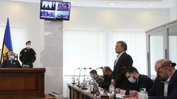 Фото: © Глава политсовета партии "Оппозиционная платформа - за жизнь" Виктор Медведчук, подозреваемый в госизмене и расхищении национальных ресурсов, в Киевском апелляционном суде.