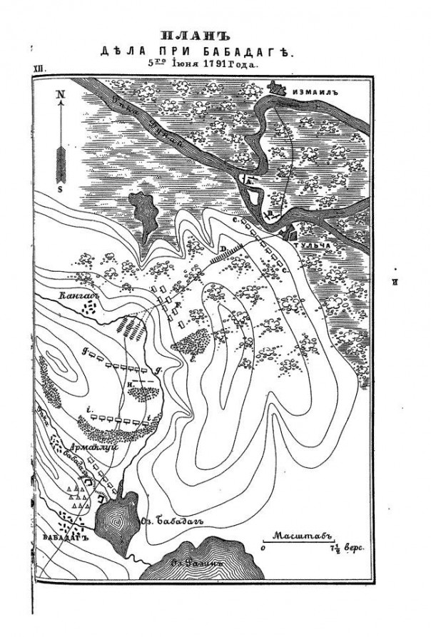 Так как было известно, что противник собирает силы у Мачина, то для отвлечения турок Репнин направил отряд Кутузова к Бабадагу. Войска Кутузова, которые стояли в Измаиле, в ночь на 3 (14) июня 1791 года форсировали Дунай у Тульчи и двинулись к Бабадагу. 4 (15) июня отряд Кутузова вышел к Бабадагу. Наша конница смяла передовой отряд турецких войск. Из Бабадага вышло до 15 тыс. турок и около 8 тыс. татар стояли отдельным отрядом, угрожая правому флангу Кутузова. Генерал направил против татар черноморских казаков, которые обратили неприятеля в бегство. Сам начал наступление на османов.
