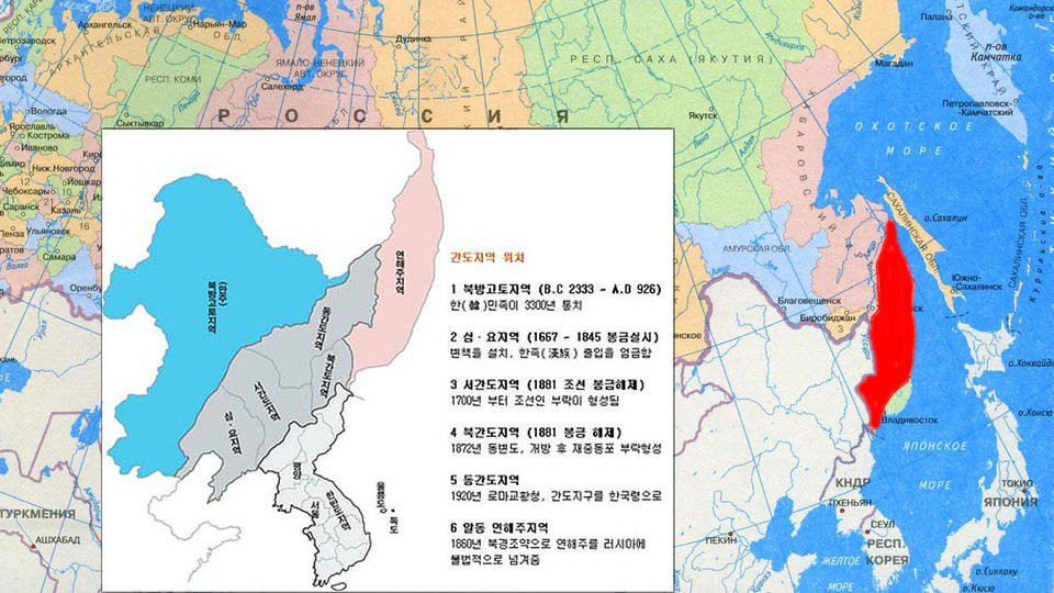 Приморский край и заамурская часть Хабаровского края Российской Федерации именуются «куском исконной корейской земли», «отторгнутым от корейского государства» в результате Пекинского договора 1860 года, «составленного за спиной Кореи».
