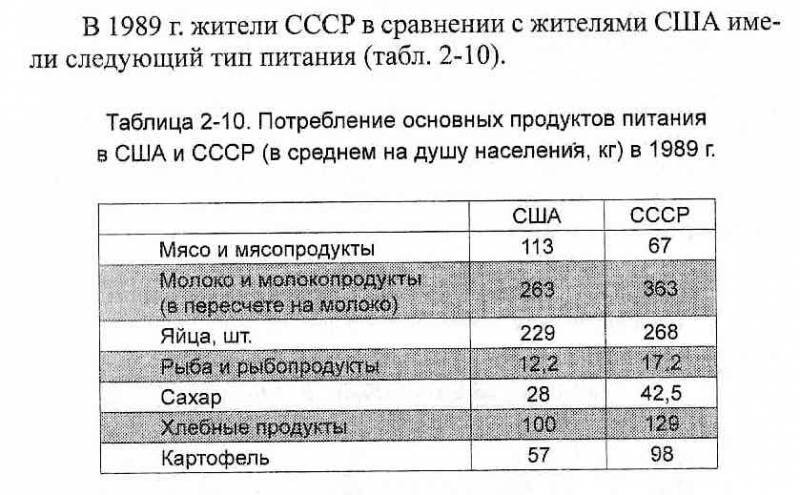 Сегодня, например, у многих вызывают скепсис цифры статистики о том, что по многим видам продуктов на душу населения СССР обгонял ведущие капиталистические страны, забывая при этом о затратах на оборону.