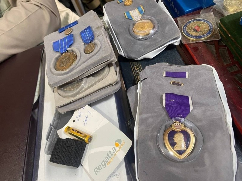 Среди наград попадаются и самые узнаваемые среди медалей и орденов США, такие как «Пурпурное сердце» (первое фото в правом нижнем углу), которую вручают всем американским военнослужащим, погибшим или получившим ранения в результате действий противника. Она является одной из двух старейших американских наград, введённых еще Джорджем Вашингтоном в 1782 году.