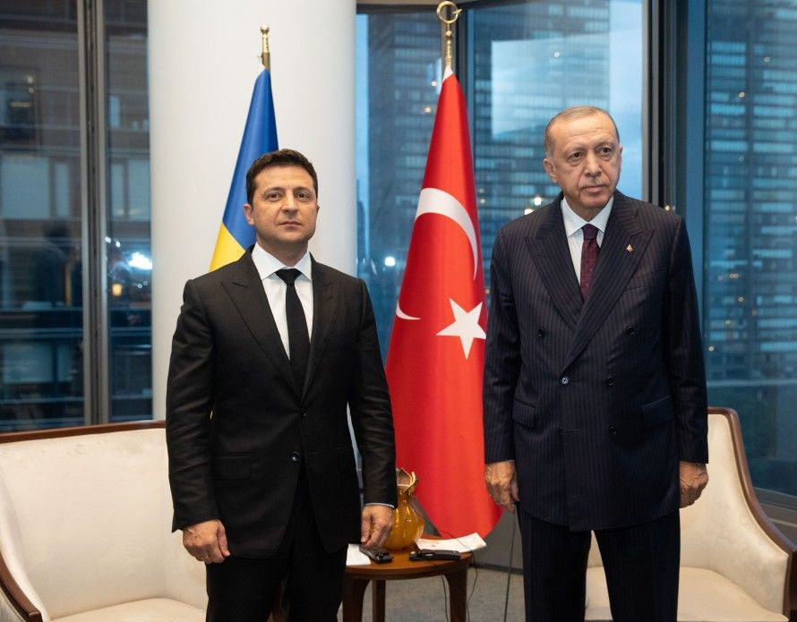 На полях 76-й Генассамблеи ООН Зеленский встретился и с президентом Турции Реджепом Тайипом Эрдоганом и поблагодарил его за «непризнание аннексии Крыма Российской Федерацией».