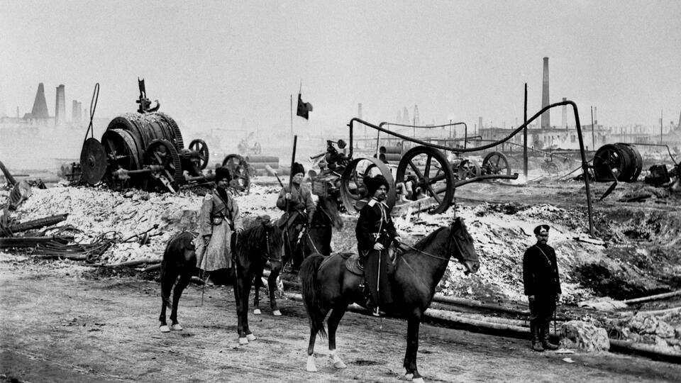Казачий отряд на нефтяных промыслах в городе Баку во время забастовки рабочих в дни Русской революции 1905 года