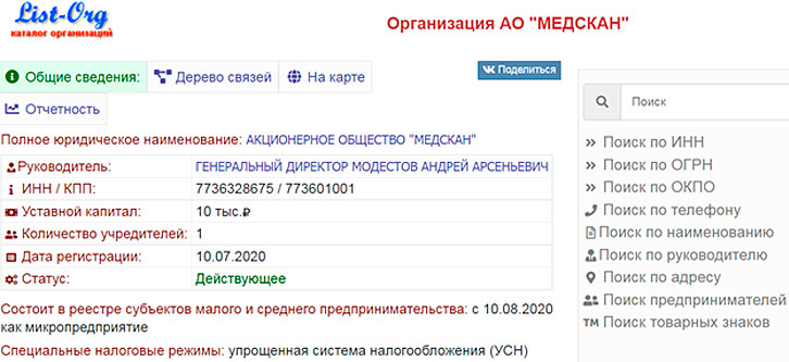 Вместе с тем существует и ООО "Медскан", где всё гораздо интереснее.