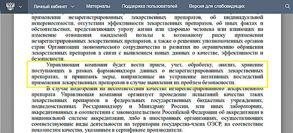 Чтобы формально указать на необходимость осуществления контроля, проект предлагает расширить функции управляющей компании. Именно она будет следить за тем, как применяются незарегистрированные в России препараты.