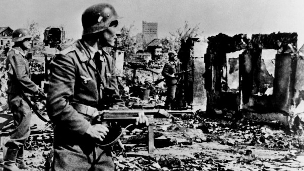 Немецкие солдаты среди развалин в ходе Сталинградской битвы во время Великой Отечественной войны. Максимально возможное качество
