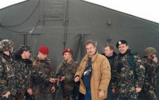 2003 год. Косово. Украинские солдаты из состава «укрполбата» KFOR общаются с военнослужащими бундесвера. В центре снимка автор статьи, тогда корреспондент киевского телеканала «Интер» по Балканам, присутствовавший при зарождении этого специфического украино-германского «боевого братства». Скажу честно, уже тогда было довольно противно.