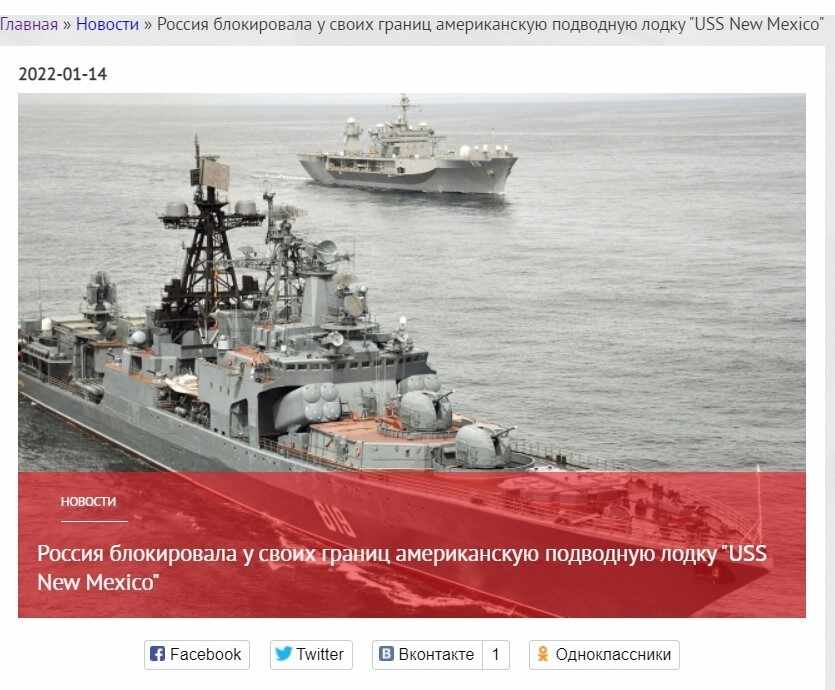 За примерами далеко ходить не надо. Потому, что в интернете их каждый день пруд пруди. Вот, например, одно местное издание, не утруждающее себя ни аргументами и фактами, выдало «на гора» очередную «сенсацию» под заголовком «Россия блокировала у своих границ американскую подводную лодку «USS New Mexico»