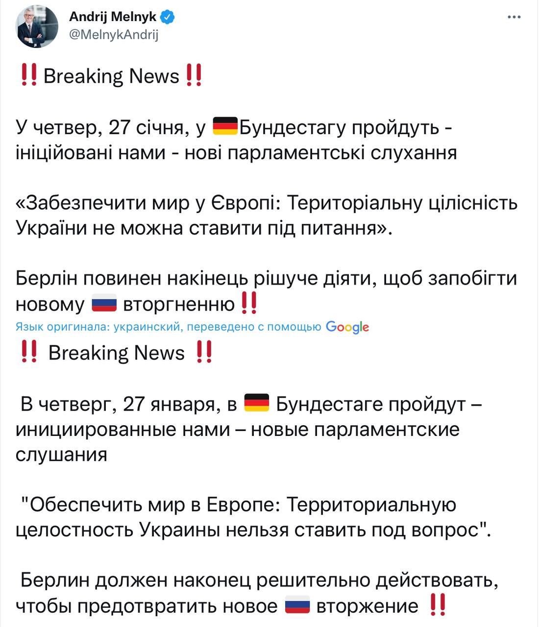 Продолжение следует. Укропосол Мельник в ФРГ уже определяет повестку дня Бундестага и рассказывает, что должна и что не должна делать Германия.