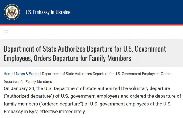 Распоряжение государственного департамента о выезде с Украины дипломатического персонала и семей американских дипломатов