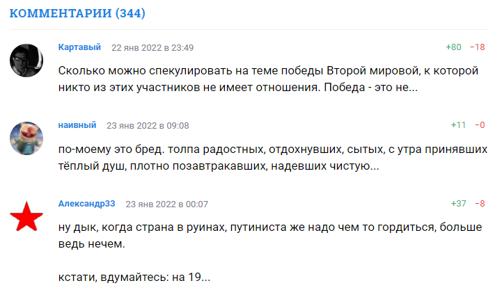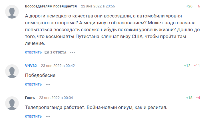 И такие комментарии все, причём одобряющих их абсолютное большинство!!! Кроме нескольких, у которых ещё остался разум в головах. Не верите? Зайдите и почитайте. Кстати, комментарии такой направленности присутствуют почти под каждой статьёй на этом сайте.