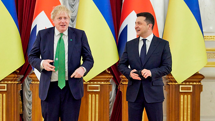 Свою линию спасителя украинцев Джонсон, снявшийся в ролике Би-би-си произносящим без всякого акцента (у него есть русские корни) приветствие укронационалистов "Слава Украине!", гнул и в Киеве. По итогам переговоров с Зеленским он заявил: