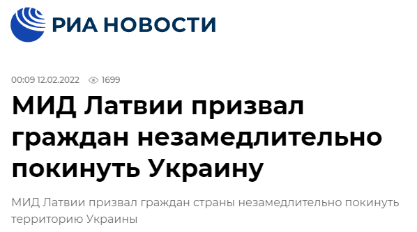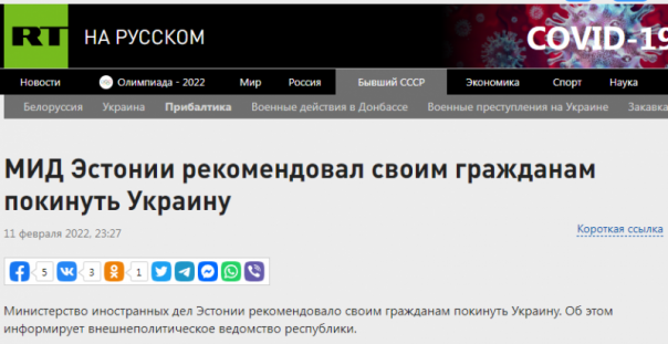«Граждан Эстонии, находящихся на Украине, просят пересмотреть необходимость своего пребывания в стране и при первой возможности вернуться в Эстонию», — заявили в МИД.