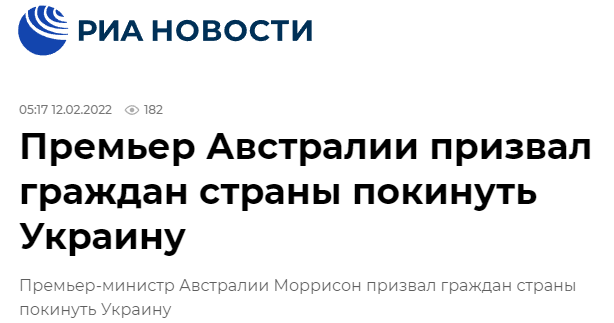"Мы уважаем их решения, но наш совет им очень ясен: это очень опасная ситуация, и ради вашей собственной безопасности вам следует постараться покинуть Украину", — заявил премьер-министр Австралии Скотт Моррисон