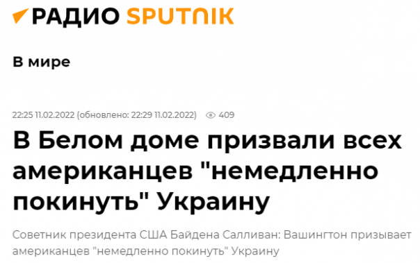 "Мы продолжаем сокращать численность сотрудников посольства в Киеве. Мы призываем всех американских граждан, которые остаются на Украине, немедленно покинуть страну. Мы не можем предсказать будущее. Но риски достаточно высоки", – заявил советник президента США по национальной безопасности Джейк Салливан