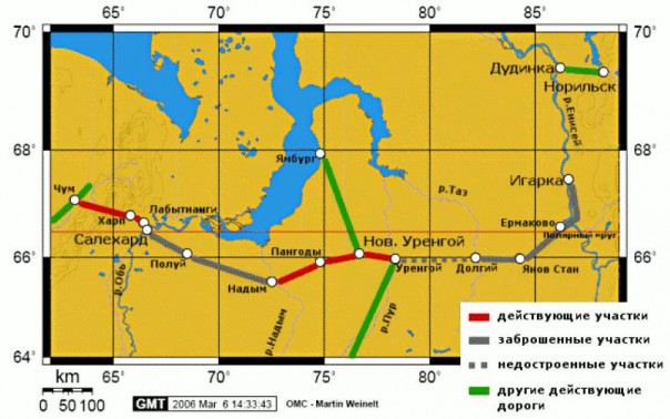 После смерти Сталина строительство было остановлено. В эксплуатацию успели ввести участки между Чумом и Лабытнанги (180 километров) и между Новым Уренгоем и Надымом (230 км). Остальные были заброшены. К идее строительства железнодорожной магистрали в Заполярье государство вернулось только в начале XXI века.