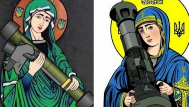 Доведенный до полного обалдения украинский «пипл», который уже не верит не в бога, ни в черта, изобрел даже способ сакрализации своих огнестрельных фантазий, кощунственно совместив их с ликами божественных особ.