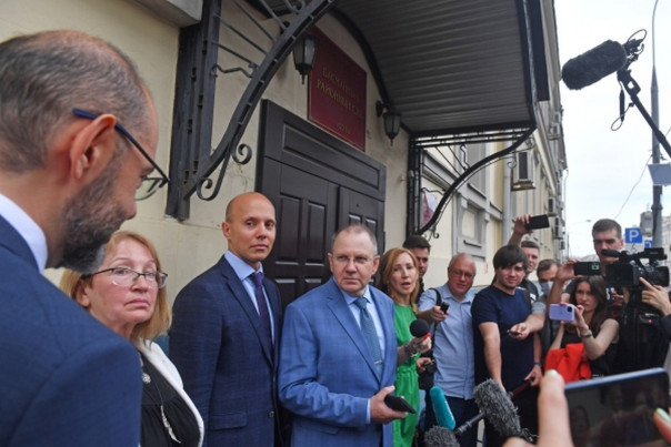 Адвокаты «сохнут» во время пресс-подхода после окончания судебного заседания по иску Минюста о ликвидации российского представительства еврейского агентства «Сохнут» в Басманном суде Москвы.