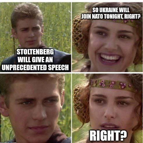 А многие поверили. Даже такой насмешливый и скептичный ум, как Анатолий Шарий, купился поначалу. Он меланхолично констатировал: «Глава НАТО Столтенберг и генсек ООН Гутерриш сегодня выступят с беспрецедентными заявлениями... Украина подписывает заявку на вступление в ускоренном порядке в НАТО … Вероятно, сегодня Украину примут в НАТО. И н…..ь на права человека, законодательство, коррупцию и прочие мелочи… Необходима такая мелочь, как одобрение всех членов Альянса. А тут уже вопрос к национальным лидерам государств-участников НАТО. Они готовы отправлять своих граждан на смерть?»