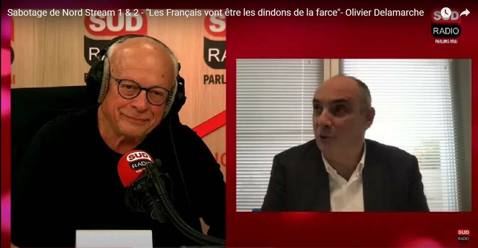 А вот к Беркоффу такие правдорубы приходят на эфир регулярно. И на этот раз в гостях у него была незаурядная личность, Оливье Деламарш, экономист, аналитик. И размышляли они в студии о том, кому был выгоден взрыв на газопроводах и самое главное - о последствиях этих взрывов для Европы.Передача так и называется: "Саботаж на газопроводах: в дураках останутся французы"