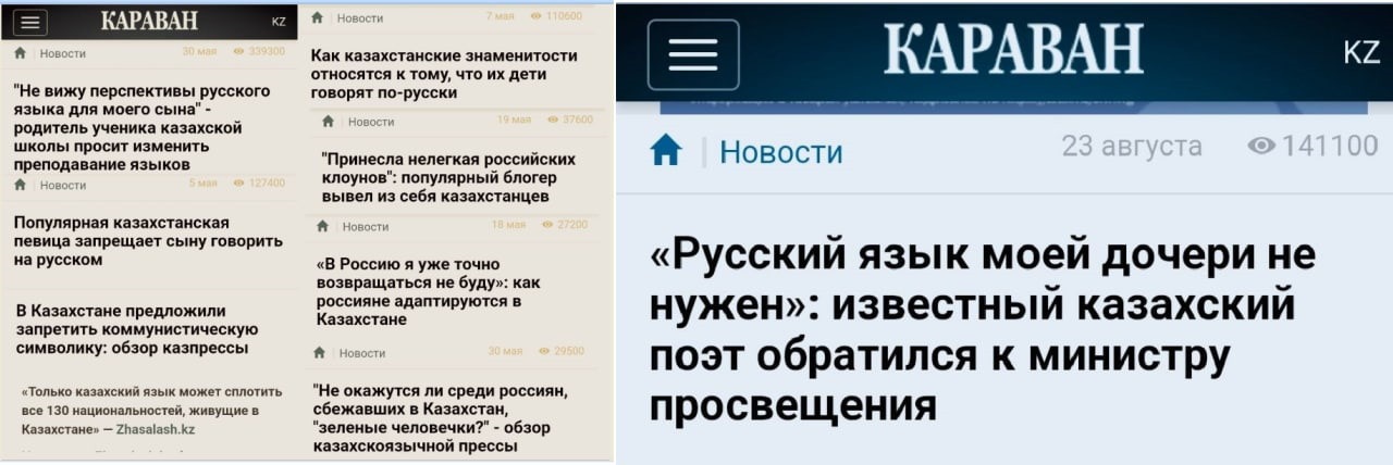 Русским Казахстана угрожают резней и травят их на русском языке, слова «как я ненавижу русских» звучат на русском языке, на русском заставляют извиняться за незнание казахского, на русском объявляют об отключении русских телеканалов. Сегодня «дезертир-пацифистов», прижав толпой одного, унижают вопросами «чей Крым?».