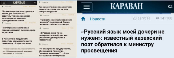 В русскоязычной программе «Информбюро» 31 канала, выходившей на русском языке, националист Ахметжан Ахметжанулы на русском языке настоятельно рекомендовал родителям на основании «неминуемой ликвидации русских школ» отправлять своих детей в казахские классы и школы. В русскоязычной газете «Караван», что принадлежит Дариге Назарбаевой, вышла статья «Отмена русского языка для первоклассников казахских школ: правильное решение, которое давно назрело».