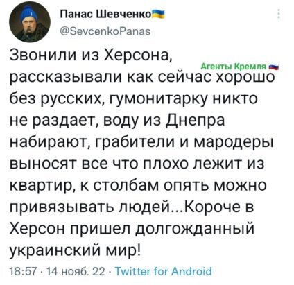 Цэукраина в Херсоне призывает граждан получать на заминированной злыми русскими площади хлеб и консервы, а также рассказывать толпе журналистов «истории оккупации». Одновременно Цэукраина призывает тех же граждан в том же городе в тот же день не ходить на ту же площадь и вообще в центр по причине якобы разминирования. И не собираться массово.