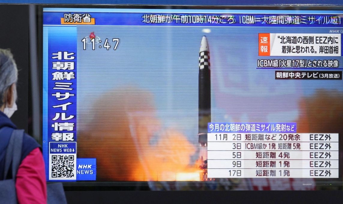 И вот новое испытание северокорейской ракетной техники. «Правительство Японии заявило, что в пятницу [18 ноября] Северная Корея провела испытательный пуск ракеты класса межконтинентальной баллистической ракеты, которая, вероятно, упала в пределах исключительной экономической зоны Японии в ее северных районах, а премьер-министр Фумио Кисида осудил это как "совершенно неприемлемое"».