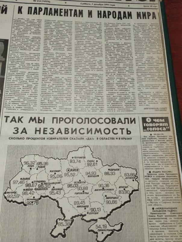 Как известно, 1 декабря 1991 года в УССР был проведён всеукраинский референдум.