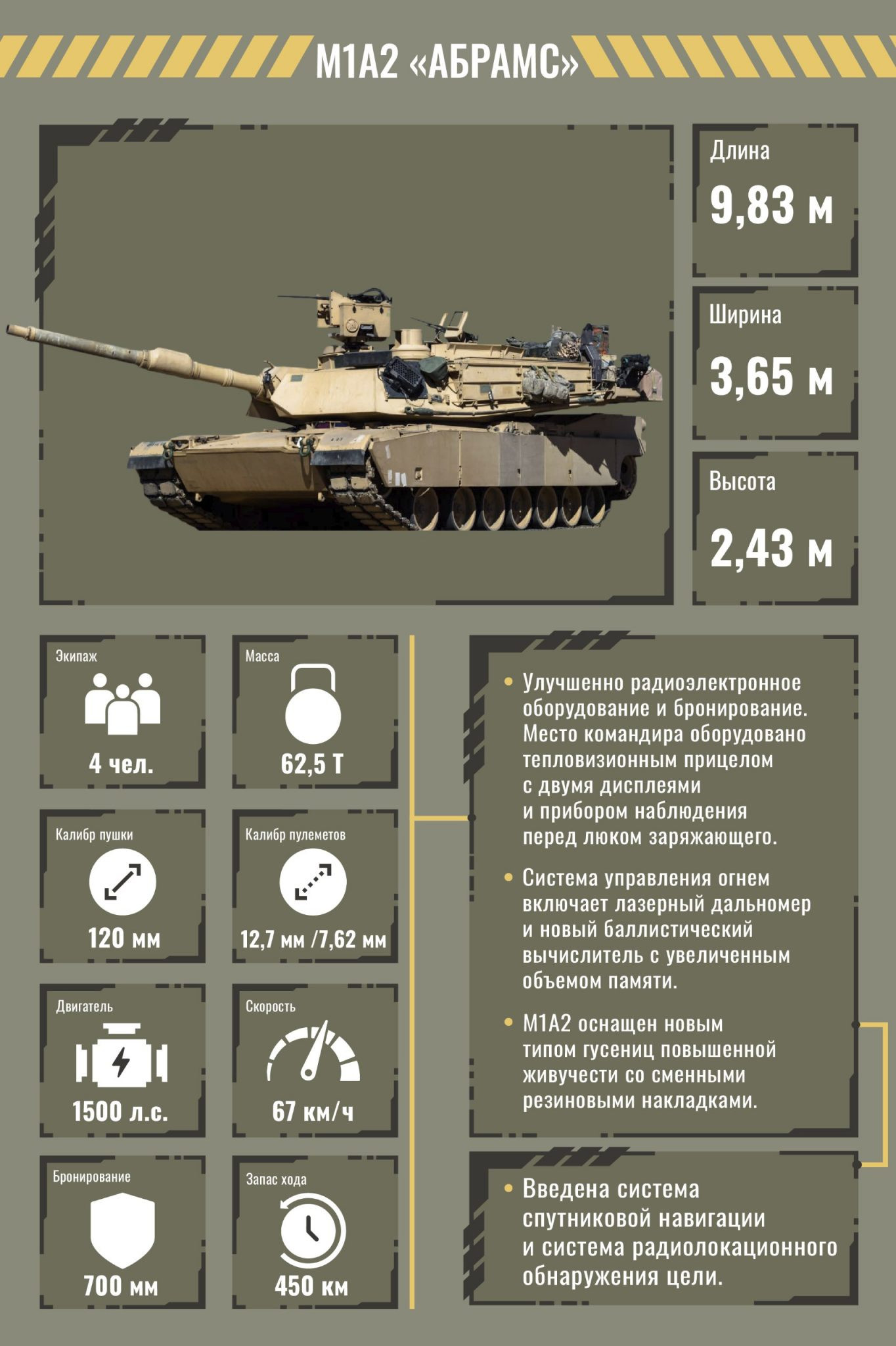 Тем самым к своим эксплуататорам «Абрамс» сразу выдвигает ряд условий в виде хорошей поддержки, выучки экипажа, своевременному ремонту и обслуживанию, а также правильному использованию.