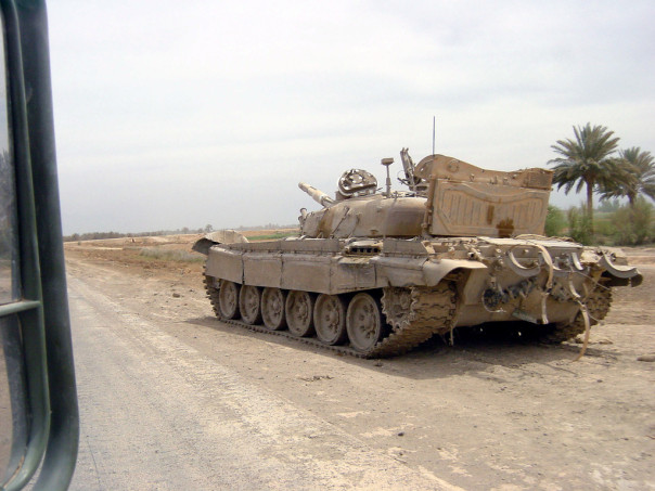 Брошенный на дороге судя по всему по технической неисправности иракский Т-72. Операция «Свобода Ираку»