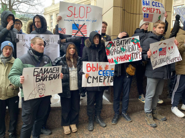 А во время приезда нового посла в МИД РФ на вручение верительных грамот ее встречал многолюдный пикет НОД. Люди скандировали «Война — бизнес США», «Америка — страна-террорист» и «Майдан не пройдет». Они держали в руках плакаты: «Зачем взорвали «Северный поток», «Ваши танки убивают мирное население», «Полетное задание «Сармат» – Вашингтон США», «Руки прочь от России».