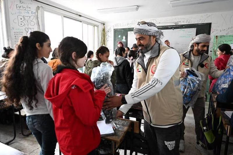 Красный Полумесяц ОАЭ раздал в Латакии 1500 школьных принадлежностей пострадавшим от землетрясений детям