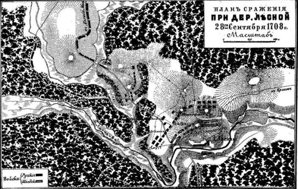 Русское царство развязало Северную войну 1700-1721 гг. с целью захвата шведских земель. В этой ситуации Швеция была вынуждена «обороняться», что якобы оправдывает вторжение Карла XII в Россию. Генерал Левенгаупт отправился на помощь своему королю, но по дороге столкнулся с более чем пятикратно превосходящим противником. При Лесной 4,5 тысячи шведов противостояли 25 тысячам русским. Левенгаупт потерял убитыми и пленными от 1 до 2 тысячи человек, но в то же время уничтожил более 20 тысяч солдат армии Пётр I. В таком контексте победа России выглядит… поражением.