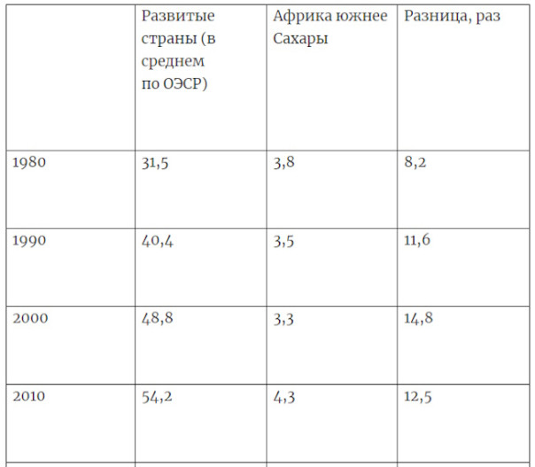 В последние 10 лет неравенство между странами Запада и Африки возросло
